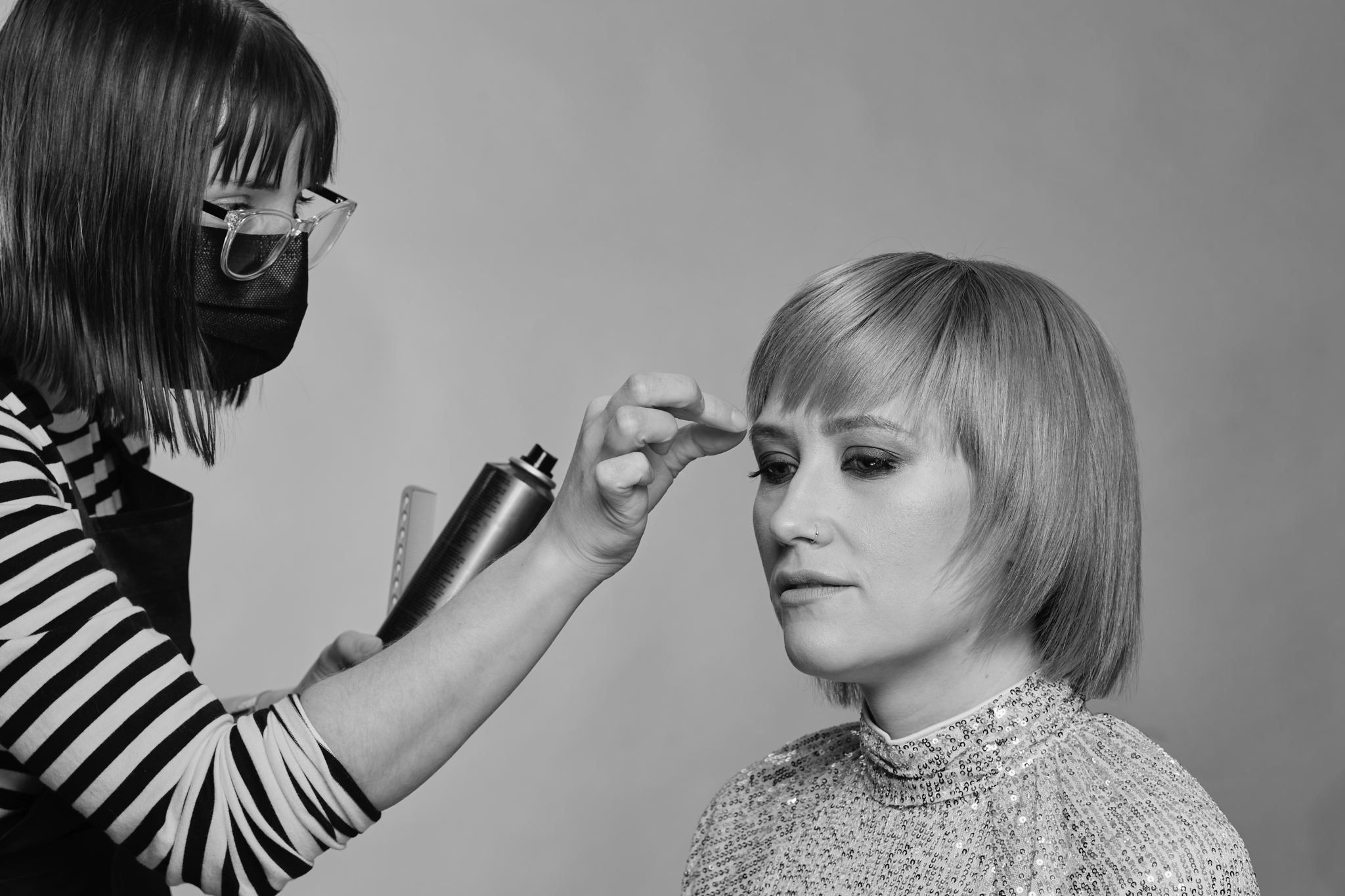 Hetan hiusta on aiemmin vaalennettu useasti, joten se on päässyt katkeilemaan monesta kohtaa, ja epätasaisen mittainen hius toimii pohjana leikkaukselle. Etuosassa oli ennestään lyhkäistä, joten otsatukkaa siistittiin ja takaosasta lähti noin 10 cm pituutta, jolla saatiin tasoitettua hiusten pituuseroja. Lopputuloksena leikattiin siis hiukset siistiksi polkkatukaksi. Hetalla on kaunis kasvojen luusto ja upeat silmät, jotka pääsevät oikeuksiinsa lyhyemmässä mallissa. Satu päätyy värissä kupariin, ja luonnollinen lämmin sävy sopii Hetan ihonväriin ja saa hänen kasvonsa hehkumaan. Hetan tyvestä tehtiin hieman muuta sävyä tummempi, hänen omaa väriään vastaavan sävyinen, jotta tyvikasvu olisi hieman armollisempi eikä tyveä tarvitsisi olla värjäämässä jatkuvasti. Satu on tyytyväinen ja Heta pitää lopputuloksesta kovasti itsekin.